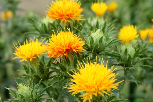 紅花は黄色の花を咲かせ、紅の染料になります。
